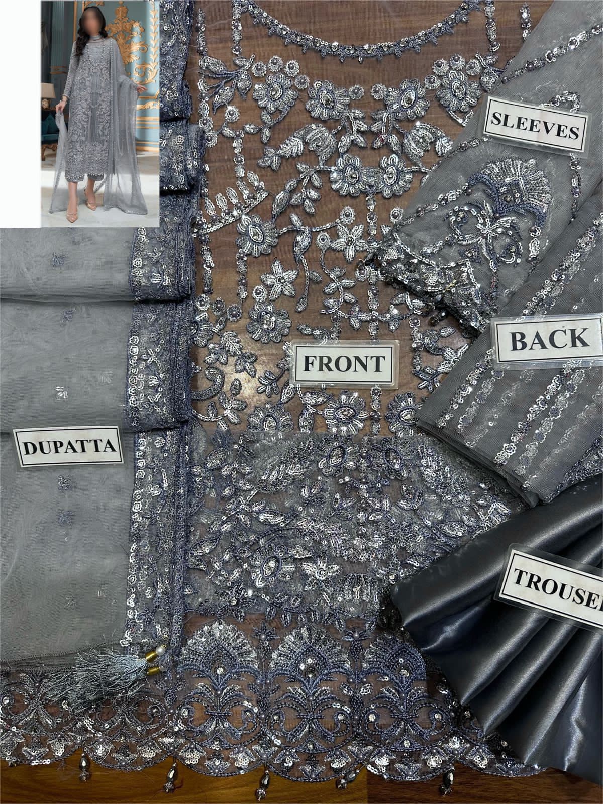 #07 LAAM Unstitched 3-Piece Luxury Net Ensemble with Embroidery & Sequins SH