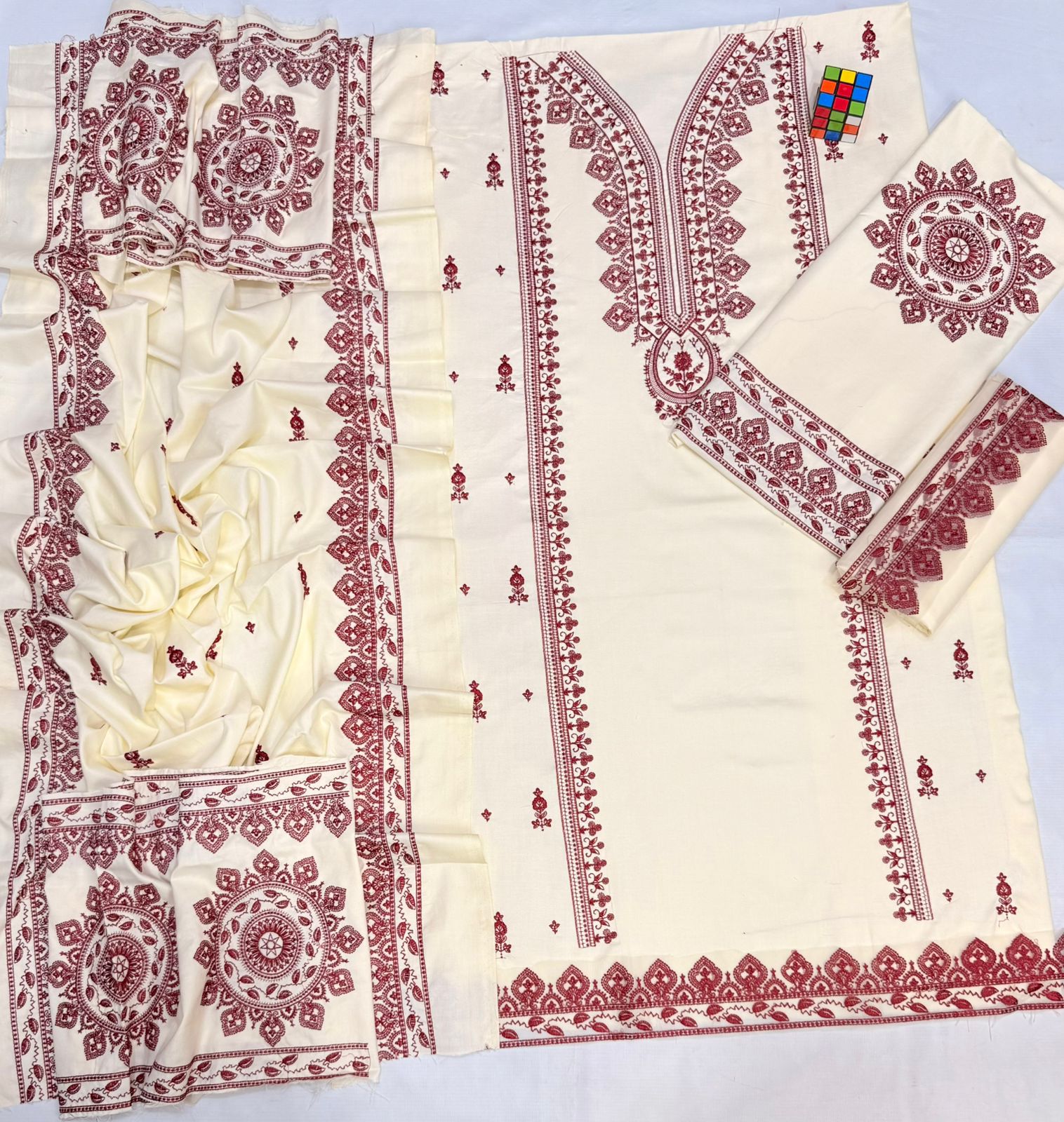 #7043 Premium π― Pure Dhanak Embroidered Suit β Full Set with Shawl, Catalog & Bag AB